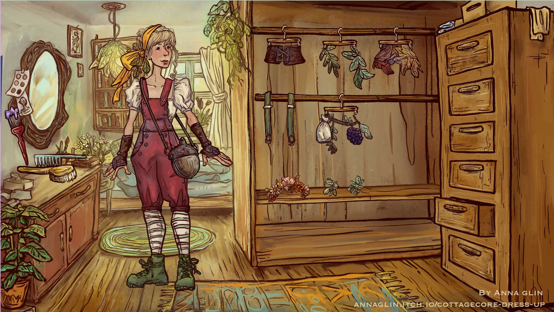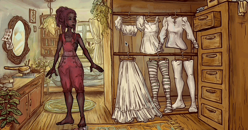 Sometimes you just want to play Dress up with some pretty clothes. Well, good news: you can! For the UI design, I opted for physical interactable objects instead of buttons to change the hairstyle etc. Playable on itch in browser for free: