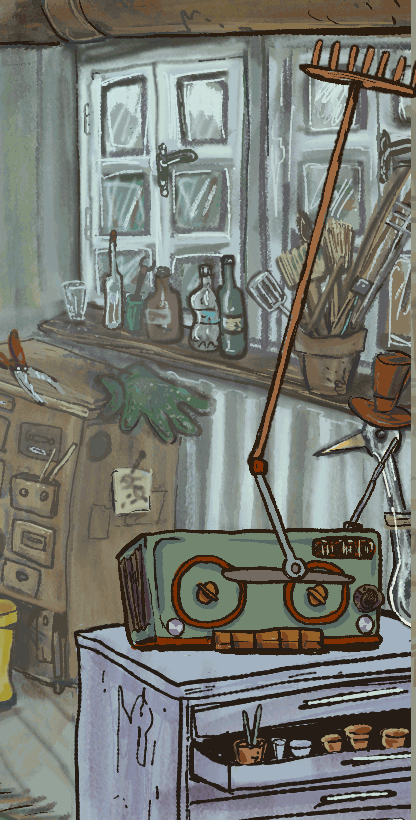 "Powerplants" is an interactive illustration which visualizes music. The player sees a room full of mechanical robot plants which have to be activated in the right order. It's a puzzle game in which you navigate with mouse clicks to get to the next animation and music loop.